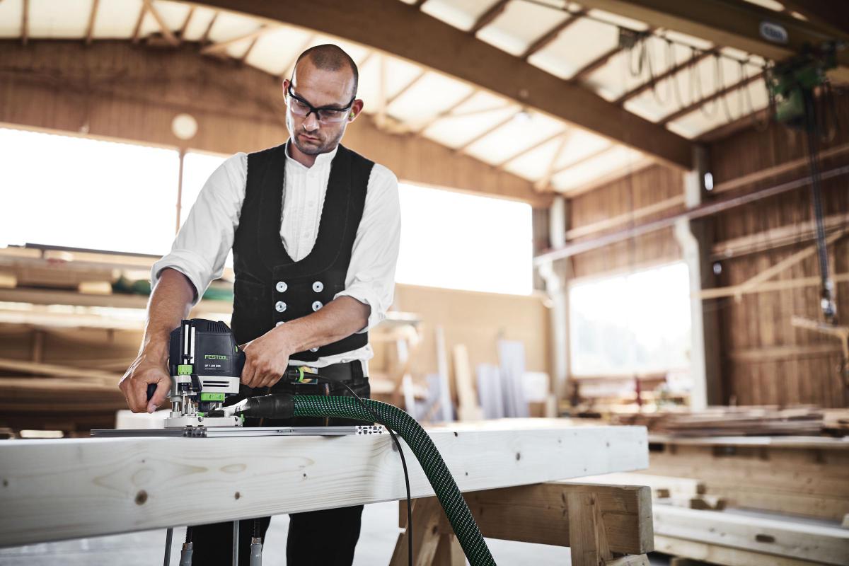 Rezkar OF 1400 tehta le 4,5 kg - ena najnižjih strojnih uteži v svojem razredu. 70 mm usmerjevalni hod je impresiven pri izdelavi vdolbin za okovje ali pri usmerjanju s šablonami. Ima tudi obsežen nabor opreme, ki mu omogoča obvladovanje tako rekoč vseh usmerjevalnih nalog. Čista natančnost: toga osnovna plošča zaradi vodilnih stebrov na obeh straneh. Kratki časi nastavitve: Načelo zibanja in raglje za priročno menjavo rezalnika. Prilagoditev globine smeri na 1/10 mm. Hitro delujoča zavora in MMC elektronika. Spreminjanje obroča za kopiranje brez orodja. Do 99% odvzema prahu pri usmerjanju z rezkarjem in pokrovom za odsesavanje prahu.