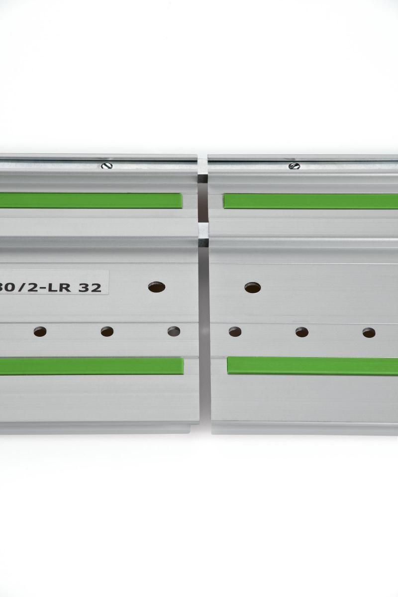 Vodilo FESTOOL FS 1400/2-LR 32 za rezanje in utore z impresivno natančnostjo. Z drsno oblogo za zagotovljeno gladkost stroja, utorom za vijačne in vzvodne objemke ter ščitnikom za drobljenje za žaganje brez drobljenja. Natančnost in udobje dosega od leta 1964. Vodilna tirnica z razmikom med luknjami je pri sestavljanju pohištva nepogrešljiva - na voljo v 1400 ali 2424 mm. Nobena druga rešitev z usmerjevalnikom tako hitro in enostavno ne ustvari vrste lukenj. Ne glede na to, ali gre za regale ali okovje, lažje ne more biti.