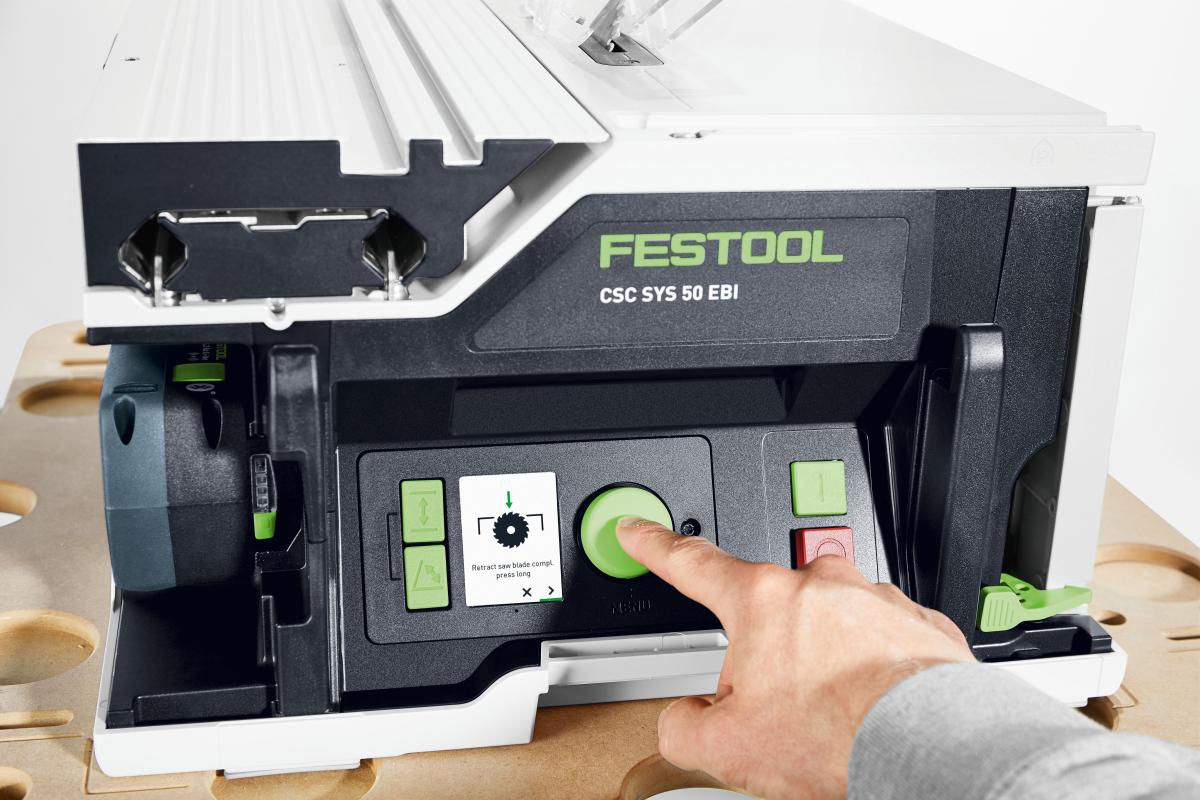 Akumulatorska namizna žaga CSC SYS 50 je tako kompaktna, da se prilega v sistajner. Čeprav je izredno priročen kot njegove zunanje mere, je presenetljivo vsestranski za uporabo: z vzporednimi rezi do 280 mm, širino reza do 450 mm in rezi pod kotom od -2° do 47°. Edinstveno digitalno delovanje zagotavlja izjemno natančne rezultate do desetinke milimetra. Dvojni baterijski sistem 2x18 V v kombinaciji z brezkrtačnim motorjem EC-TEC prepriča z močjo in navorom - ne boste občutili nobene razlike v primerjavi z električnimi stroji. Skupaj s podvozjem UG-CSC-SYS imate s seboj popolno delovno mizo, ki olajša transport od vozila do mesta uporabe.