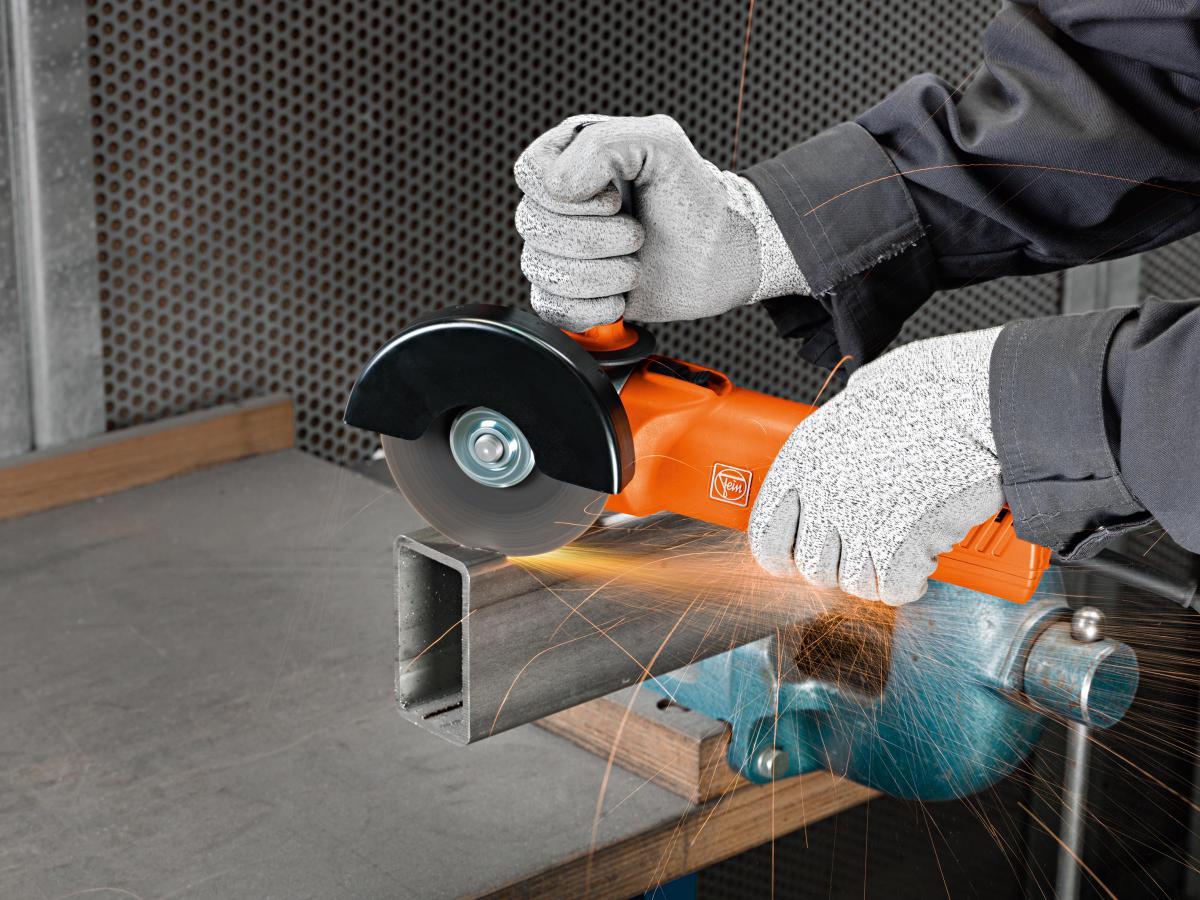 Kompaktni 1100 W kotni brusilnik FEIN WSG 11-125 - daljša življenjska doba ogljikovih ščetk in orodja odstranita več materiala kot primerljive kotne brusilke. Trdna kovinska glava menjalnika za maksimalno robustnost in življenjsko dobo. Najlažji model te vrste (2,1 kg).
