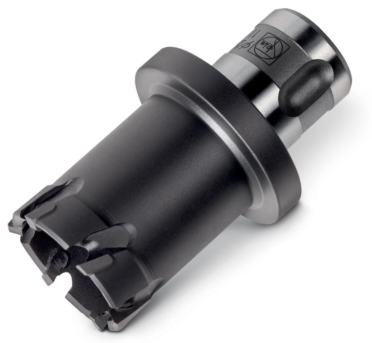 Kronski sveder FEIN HM QuickIN PLUS 20 prevlečen s titan-aluminijevim nitridom. Globina reza 20 mm.