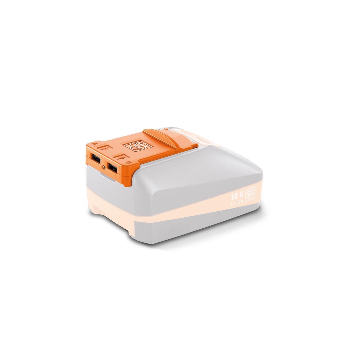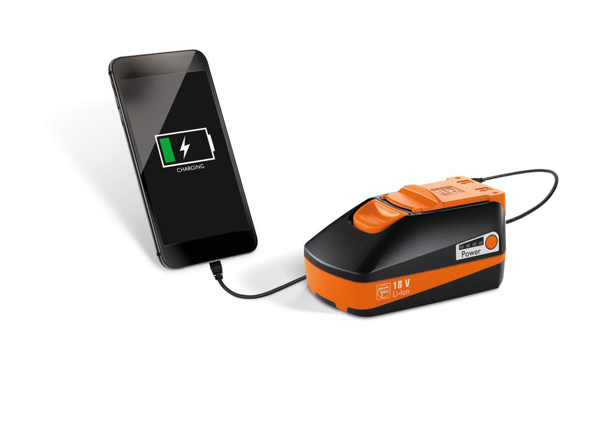 2 hitra priklopa USB za hitro polnjenje z 2 x 1,2 ampera. Primerno za iOS in Android. Združljiv z vsemi 12/14/18 V FEIN Li-ion baterijami.